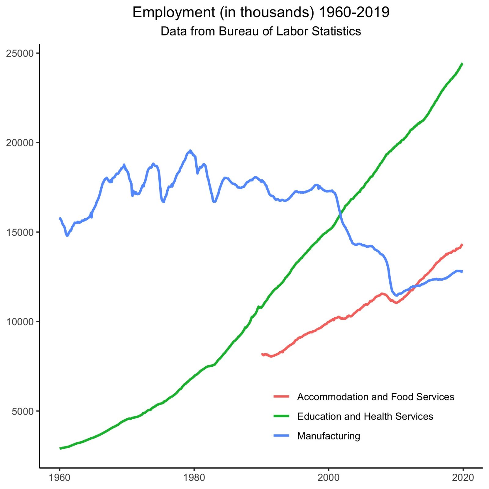 According to Jennifer Klein, a history professor at Yale, the value of work is tied to definitions like “breadwinner” and “masculinity.” In a place like Johnstown, service jobs fall outside of a conception of hard work that had once meant working in the mills to provide for one’s family. This is a problem. Low-wage service and care jobs have been outpacing manufacturing jobs for several decades, a gap that will only continue to widen.